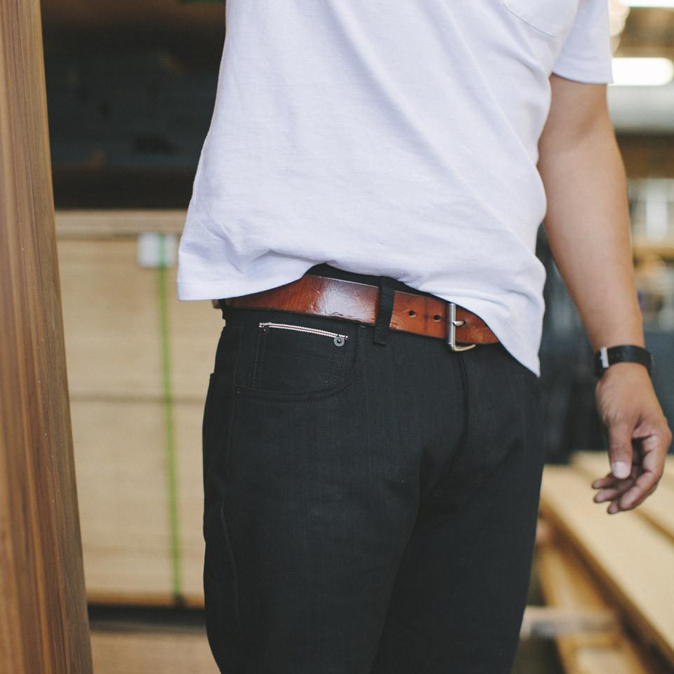 To create a more bad ass pair of jeans, we started by going to Italy. We'd heard of a certain place that had shuttle looms. The rarest breed of looms that make the most beautiful denim, the old fashioned way. At 14.75 ounces; it's burly but still built to move. This is a true black jean: black warp and weft, black YKK hardware and black Wickett and Craig steer hide patches. These jeans feature our San Francisco map pocking and are proudly constructed in the state of Cali-for-ni-a.