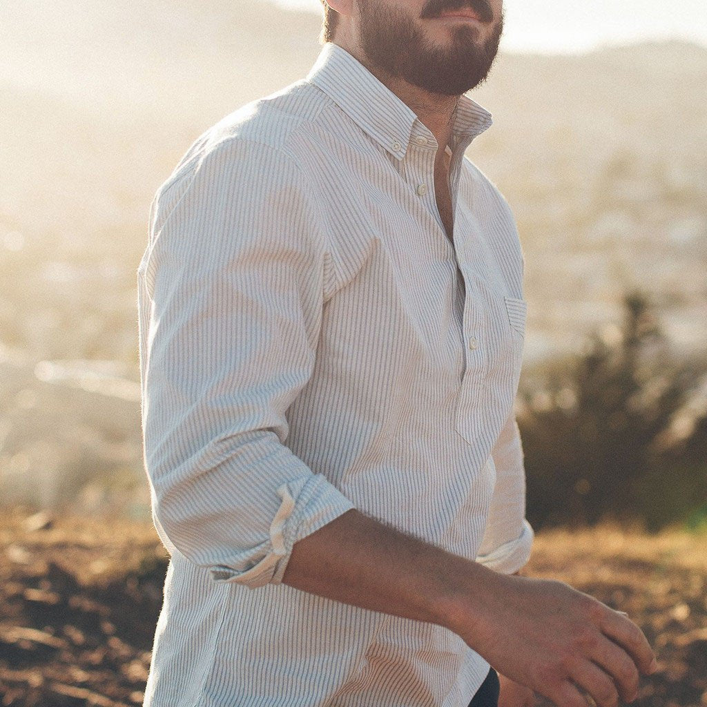 - Soft button down collar.
