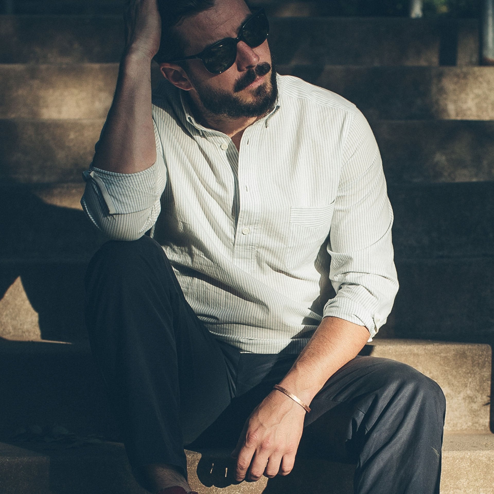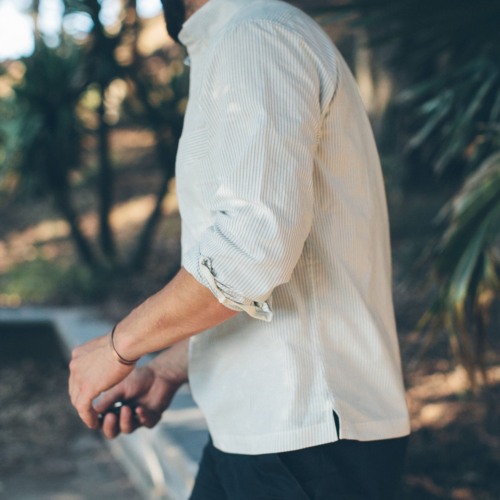 - Single button rounded cuffs and rounded chest pocket.