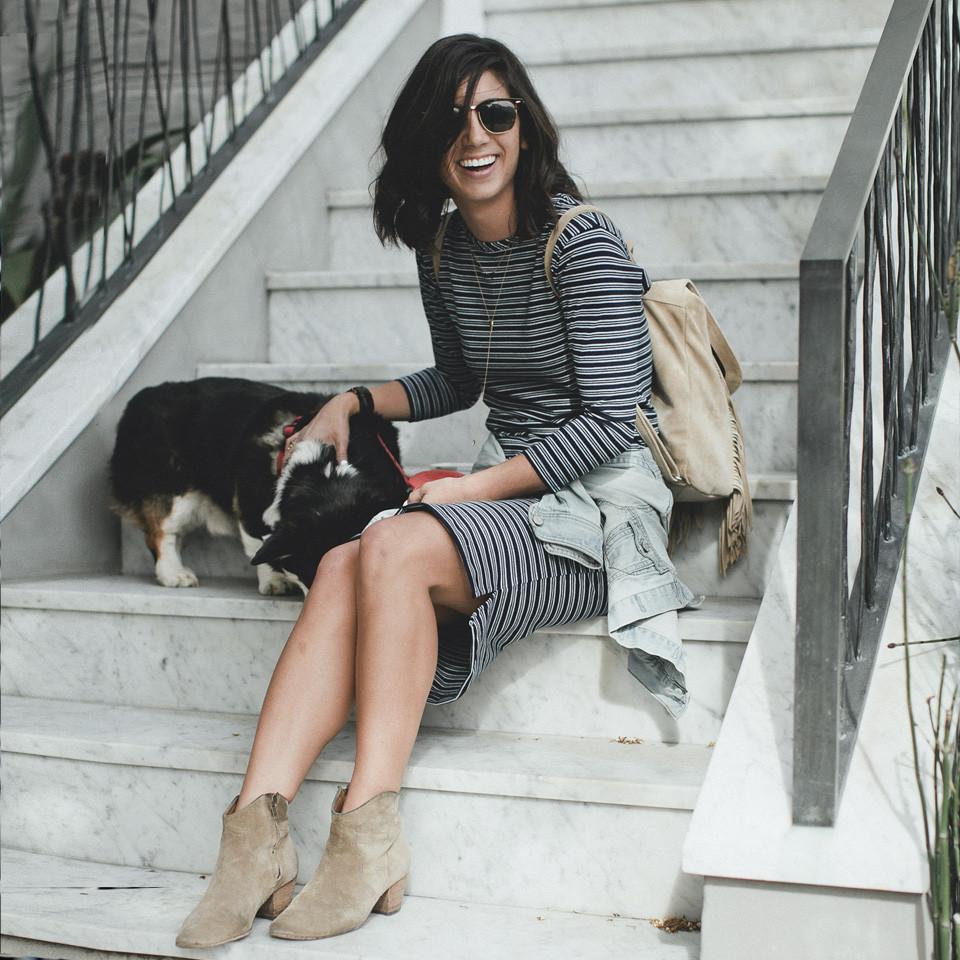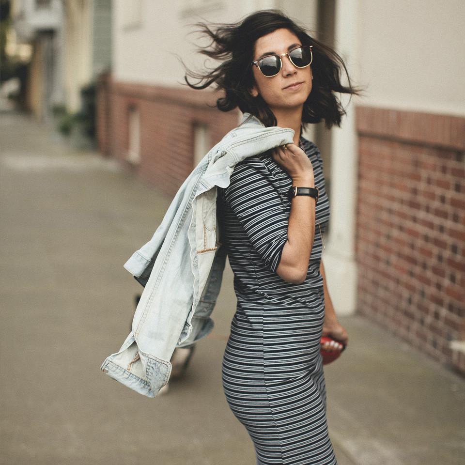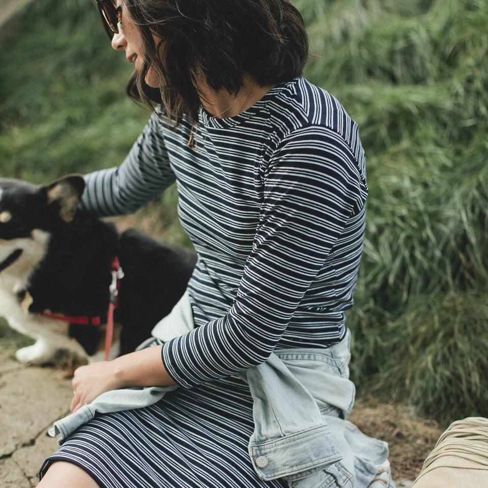 • Load image into Gallery viewer, The Eva Dress in Indigo Stripe