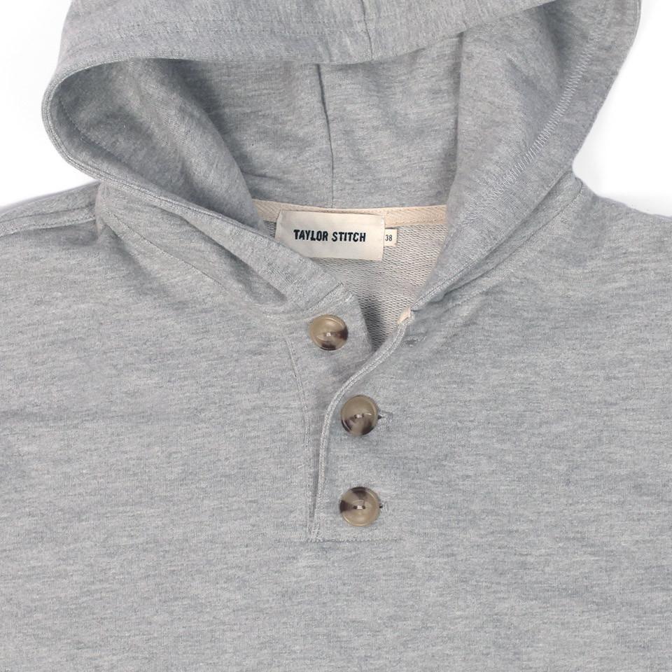 • Load image into Gallery viewer, Heather Grey 3 Button Hooded Sweatshirt