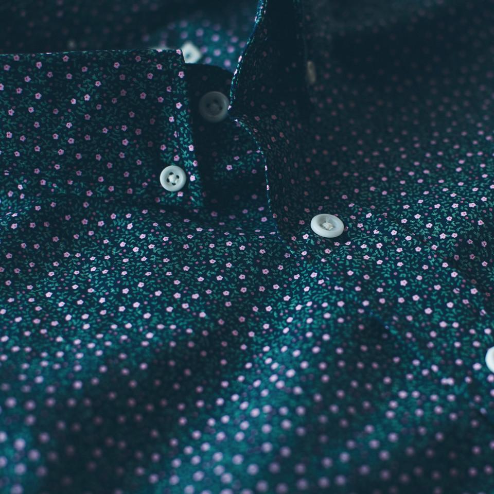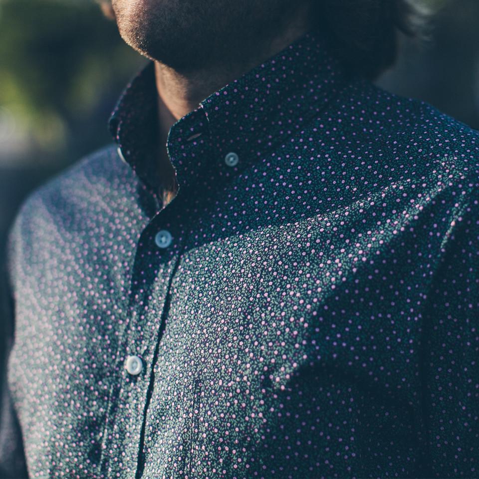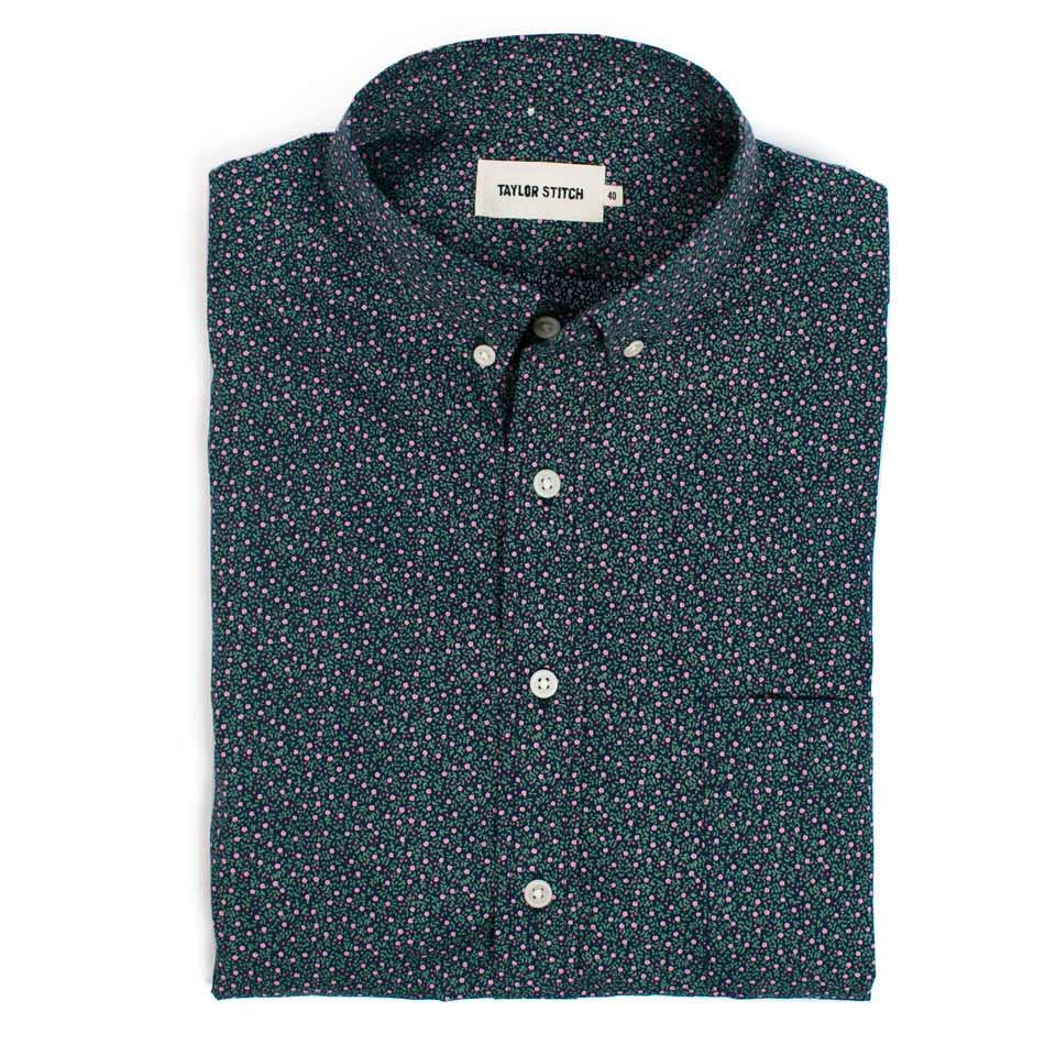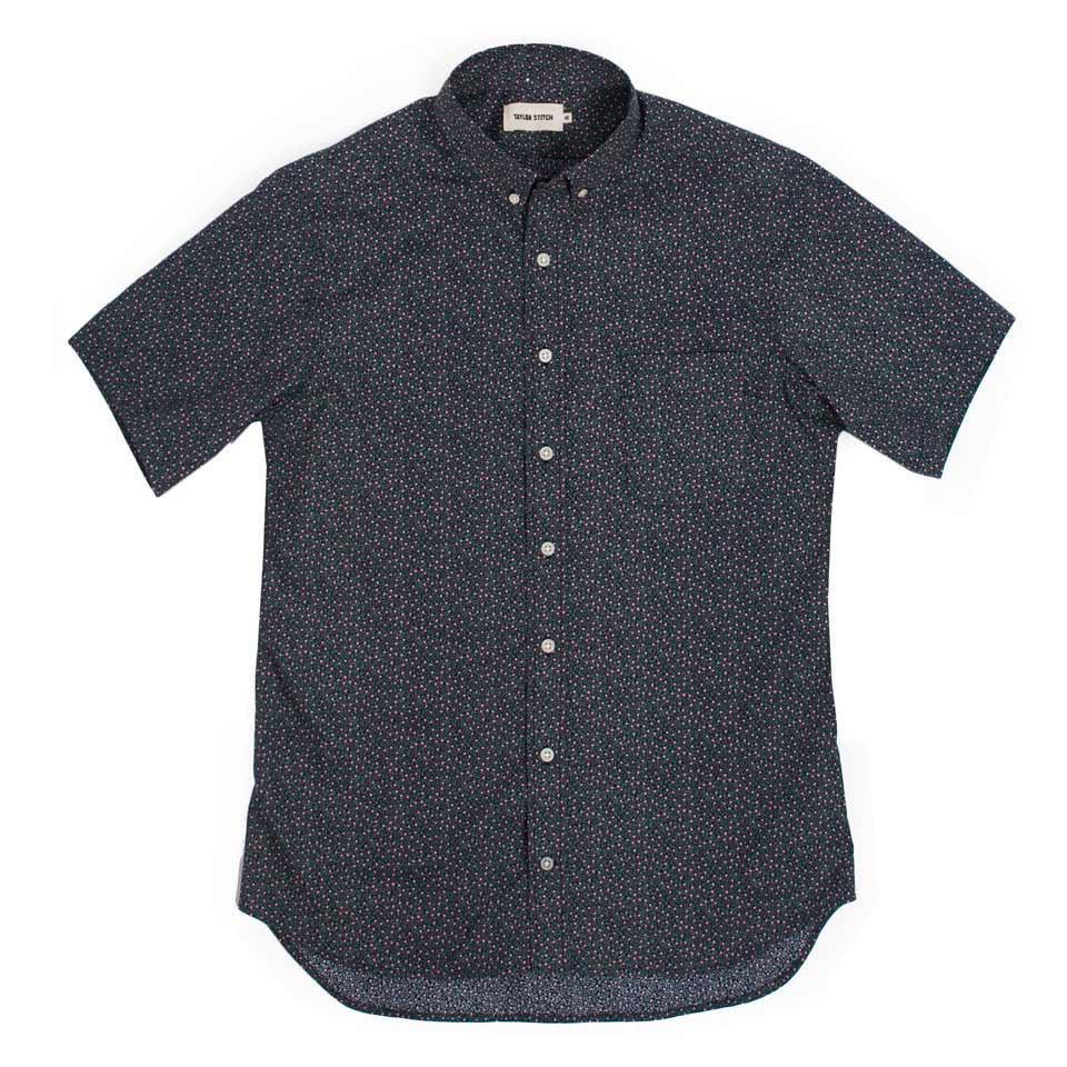 Our staple shirt has a tailored fit with a triple button collar. Now our oxford is available in short sleeves with a Navy Mini floral print. Shop In-Stock now.