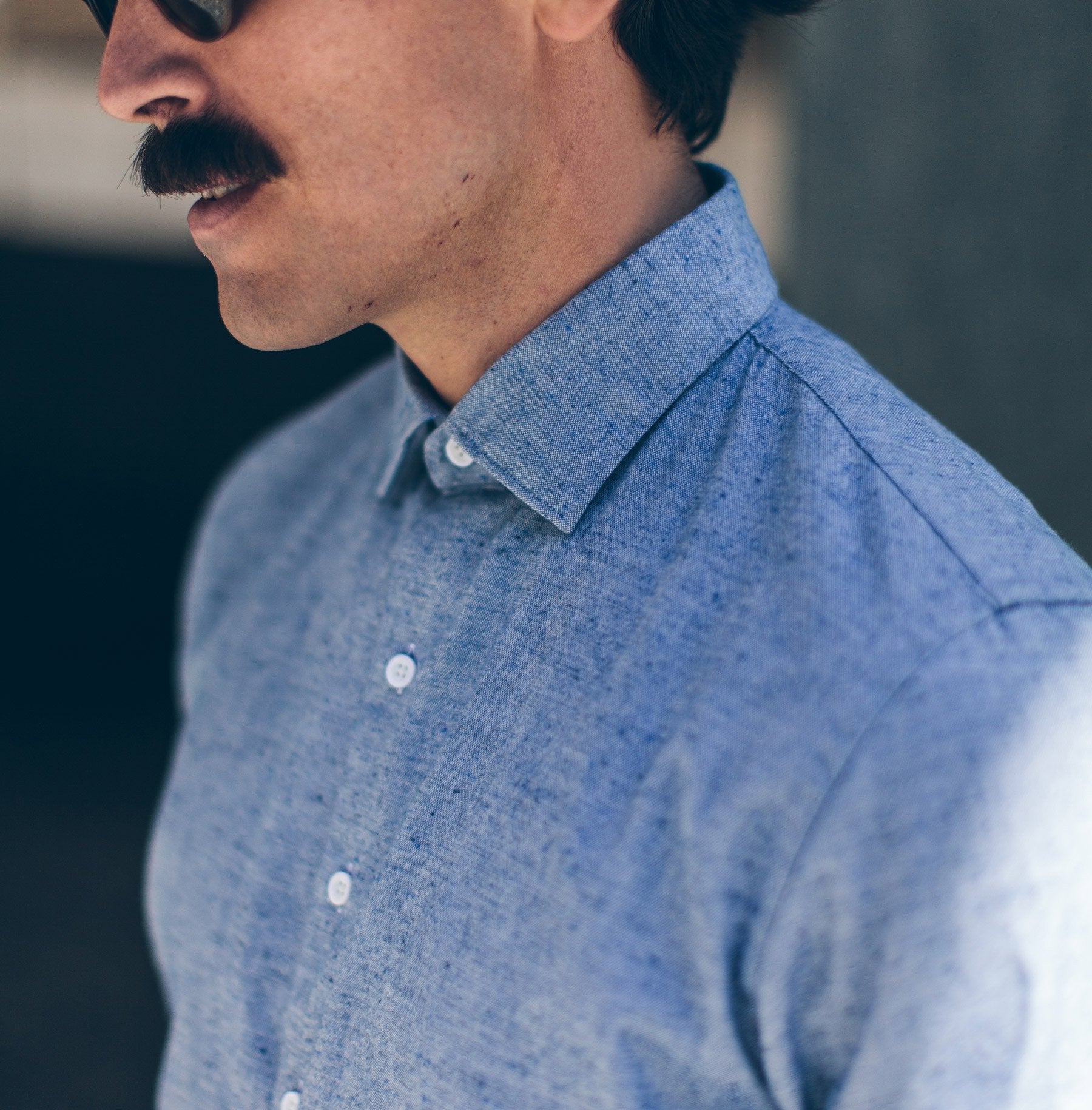 A versatile dress shirt that looks as good with a tie as it does worn under a suit jacket. Made from a brushed fabric makes it soft to the touch. Now in Blue.