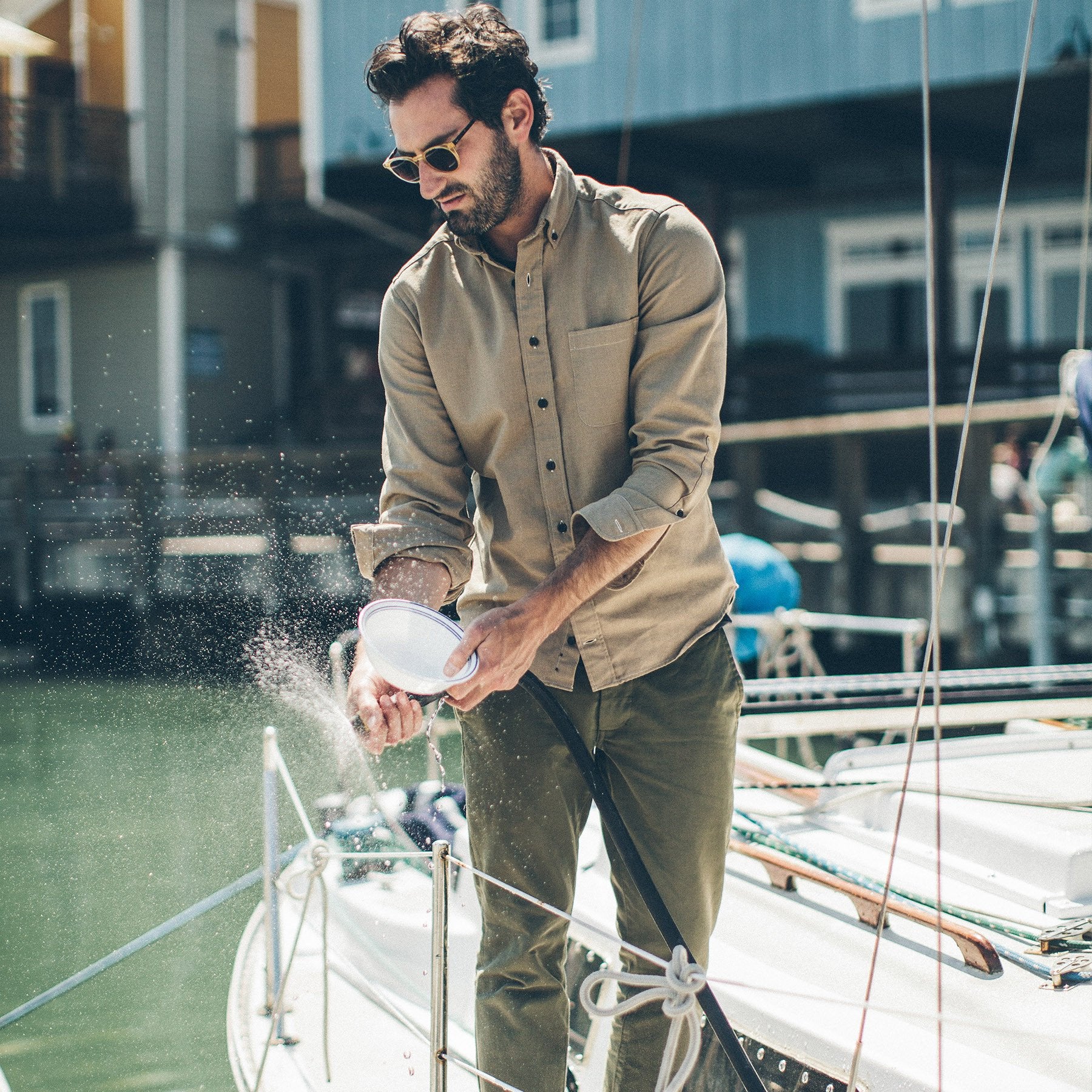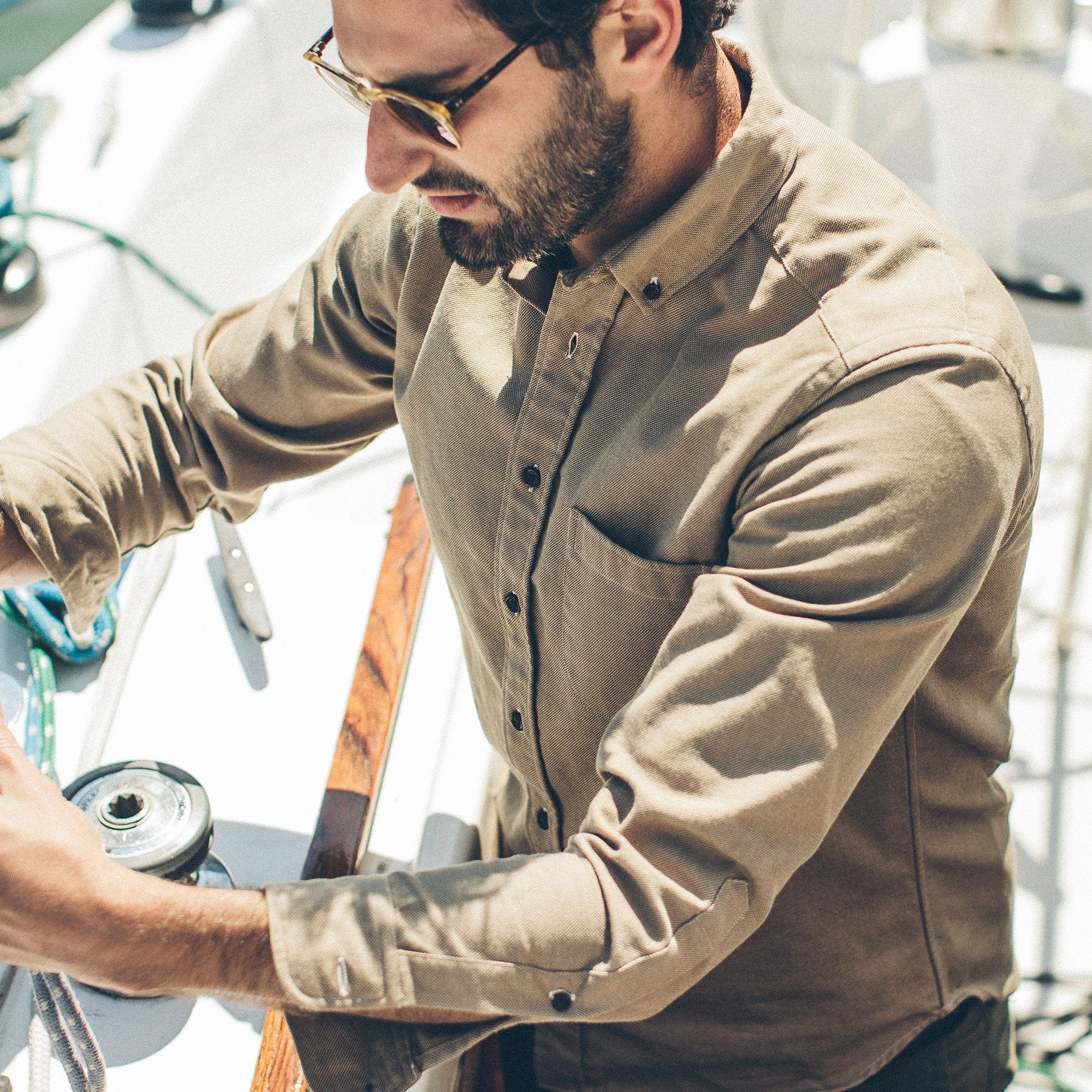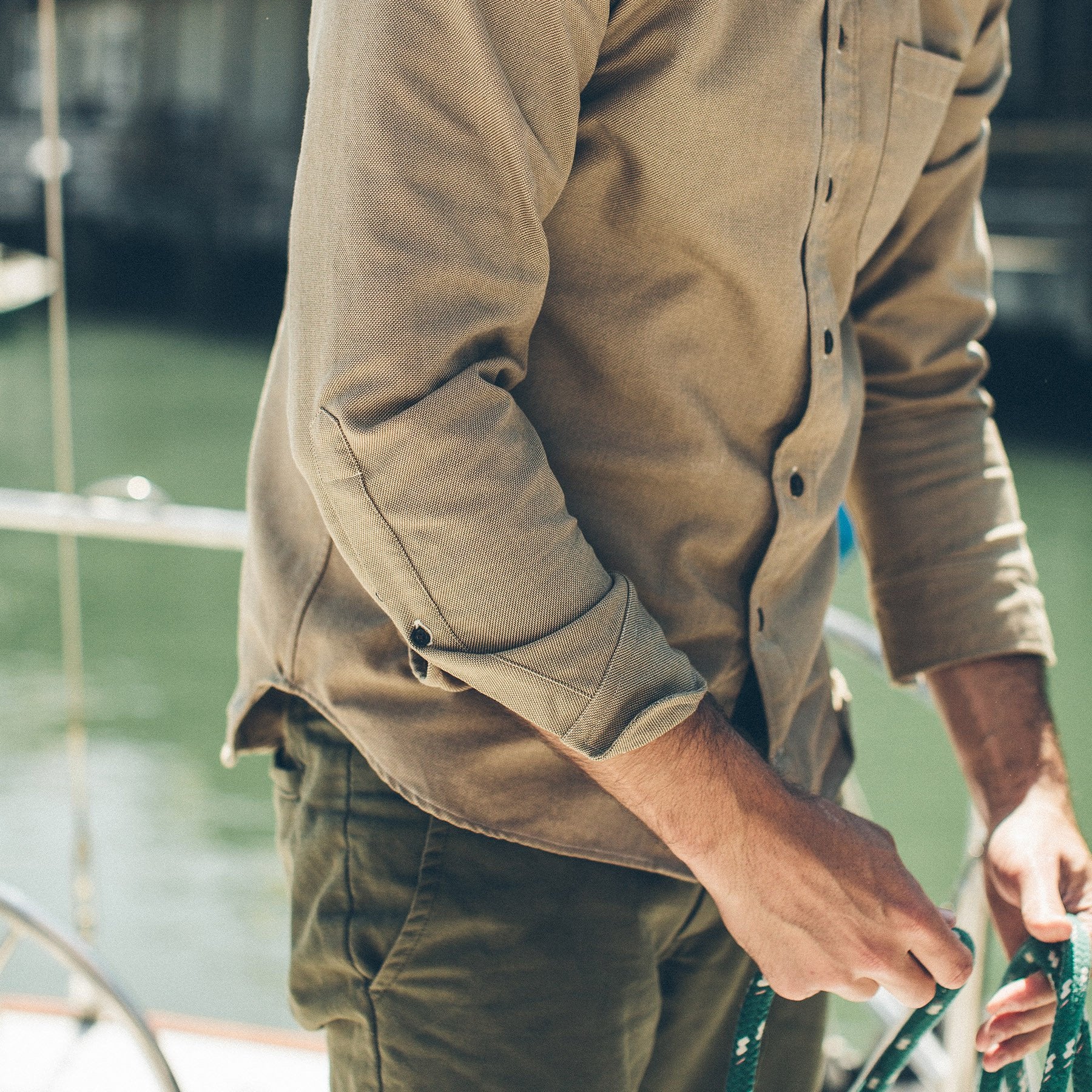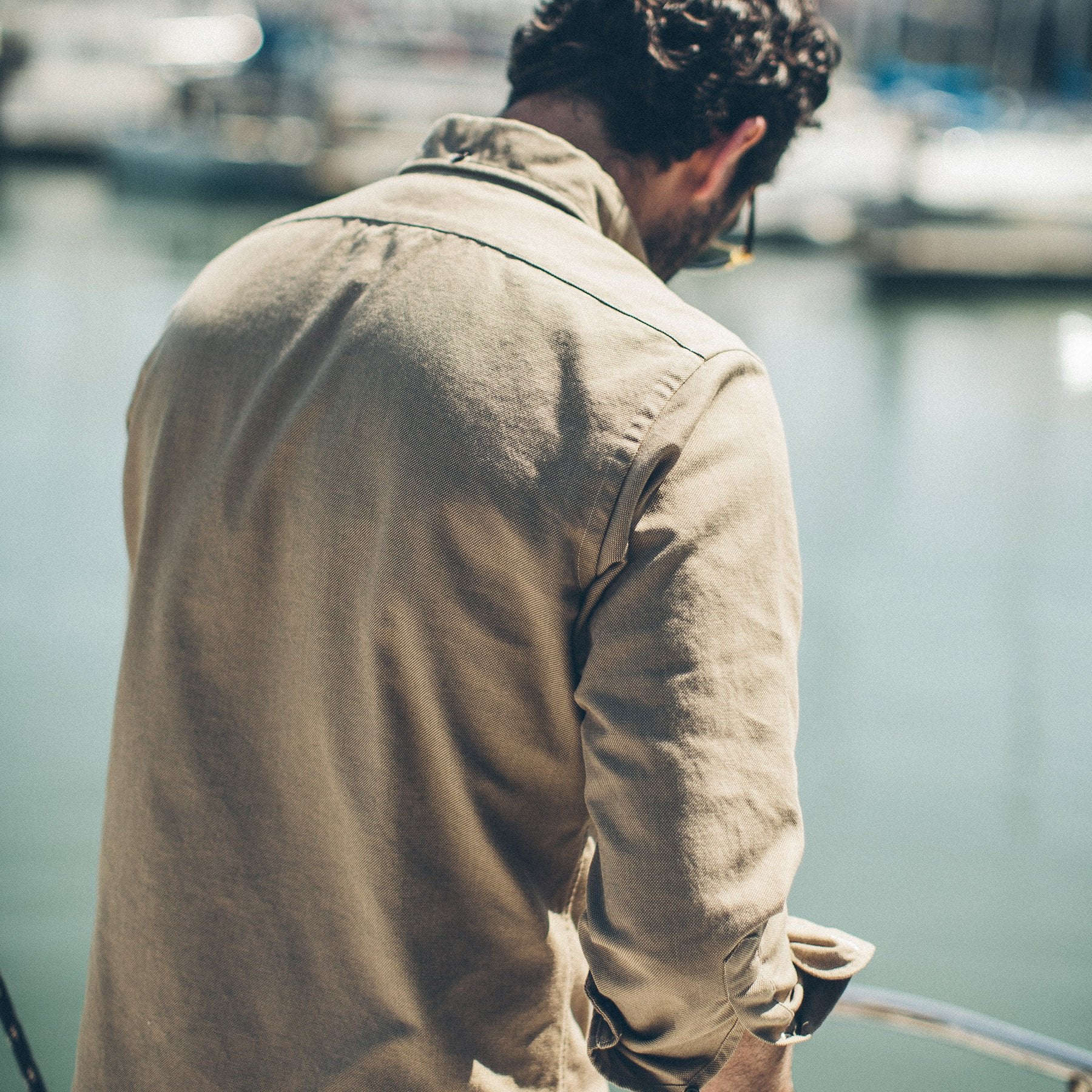 Our staple shirt got beefed up. This oxford is made from a 8-oz. Work Oxford in Khaki. Soft, sturdy, with superior tailoring, In-Stock now.