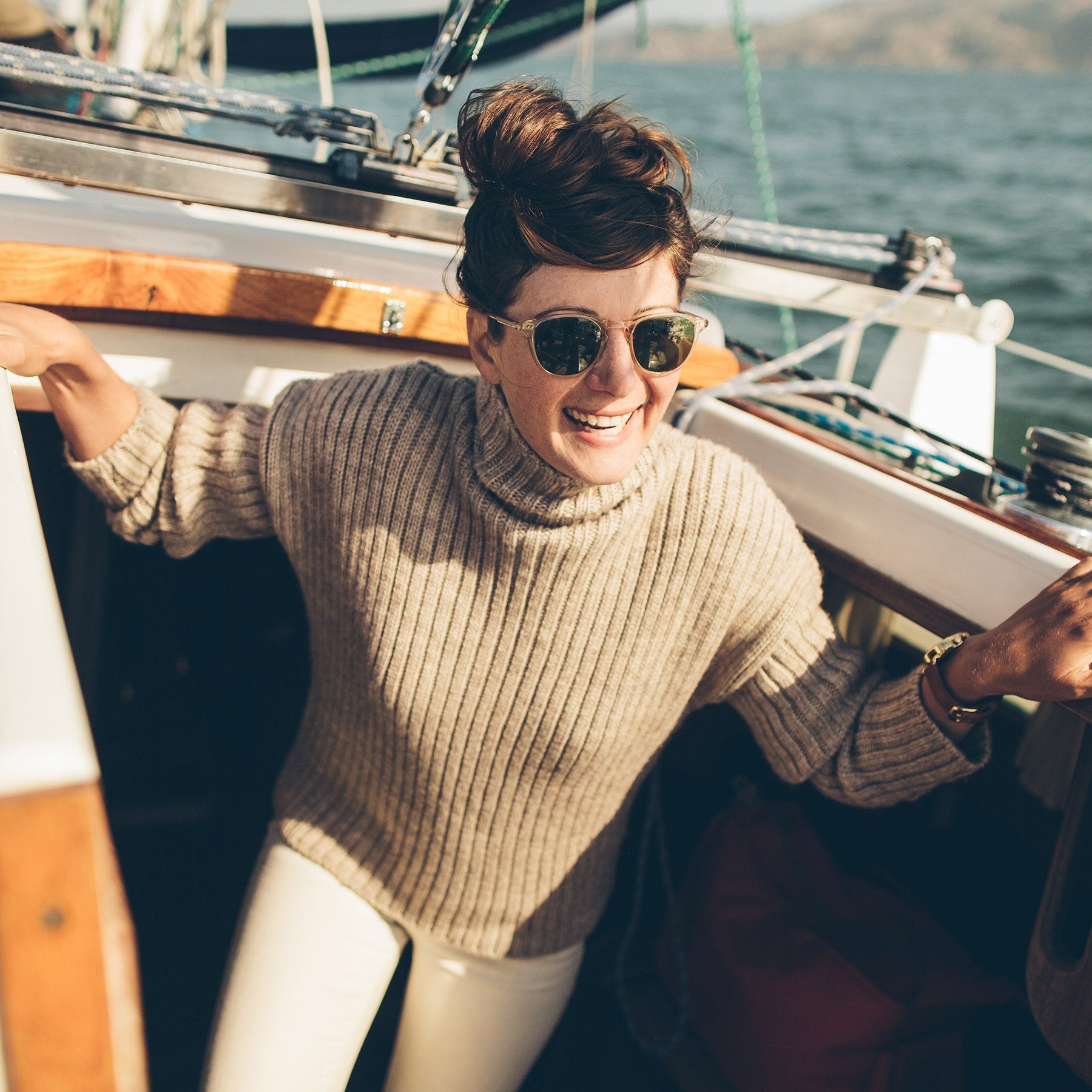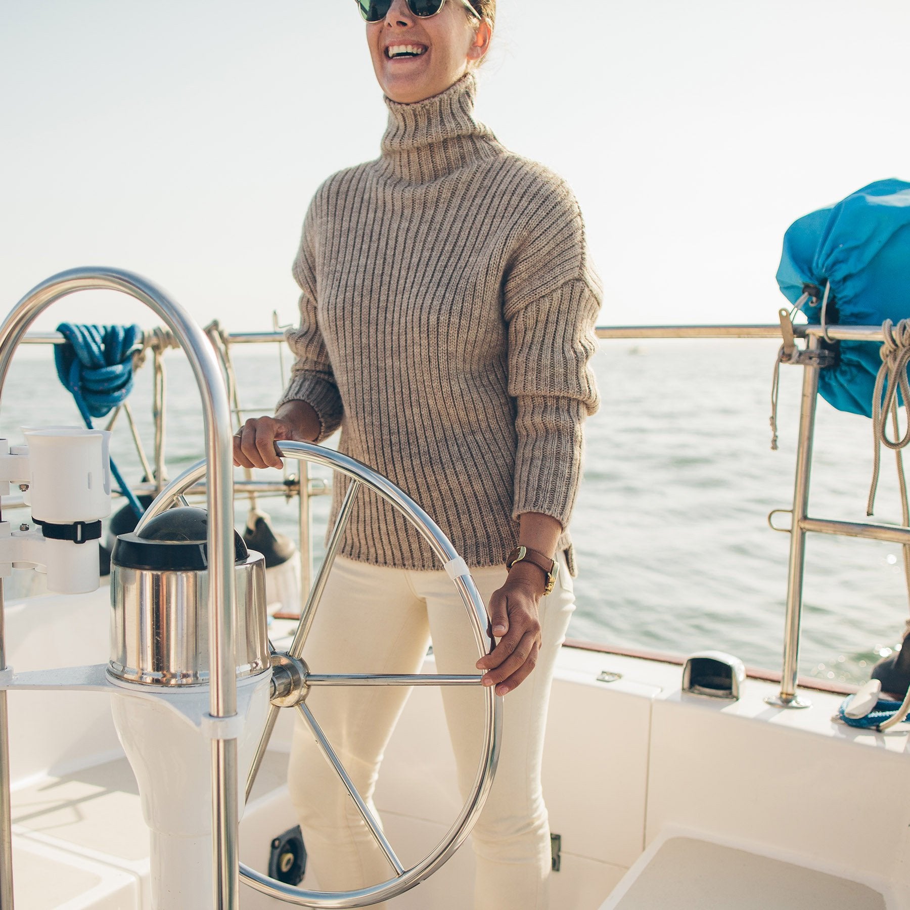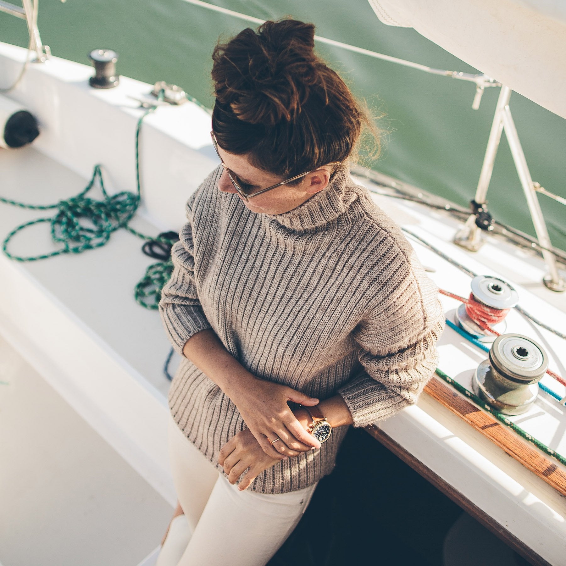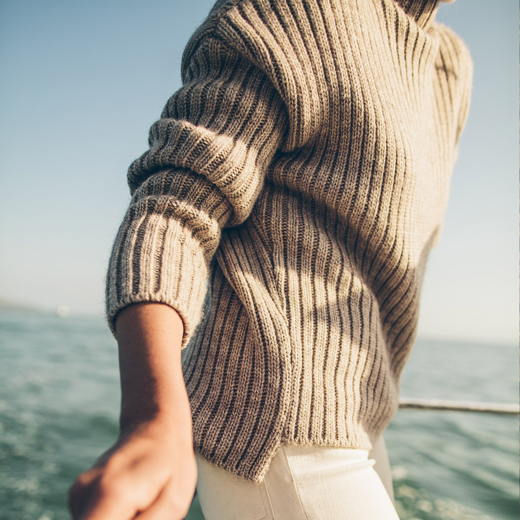 It's sweater season. And whether figuratively or literally, we'd hate to see you left out in the cold. The Maritime Sweater—boasting a funnel-neck collar, drop shoulder, and high-low hemline—was crafted for coming off the water and cozying up to the fire with a nice glass of red in hand.