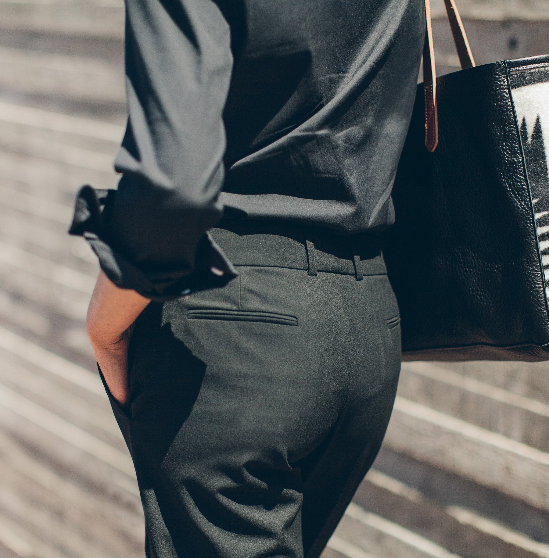A trouser that does it all. Classic silhoutte with a tailored leg that finishes above the ankle. Teams well with sneakers and heels alike. Shop Essentials.