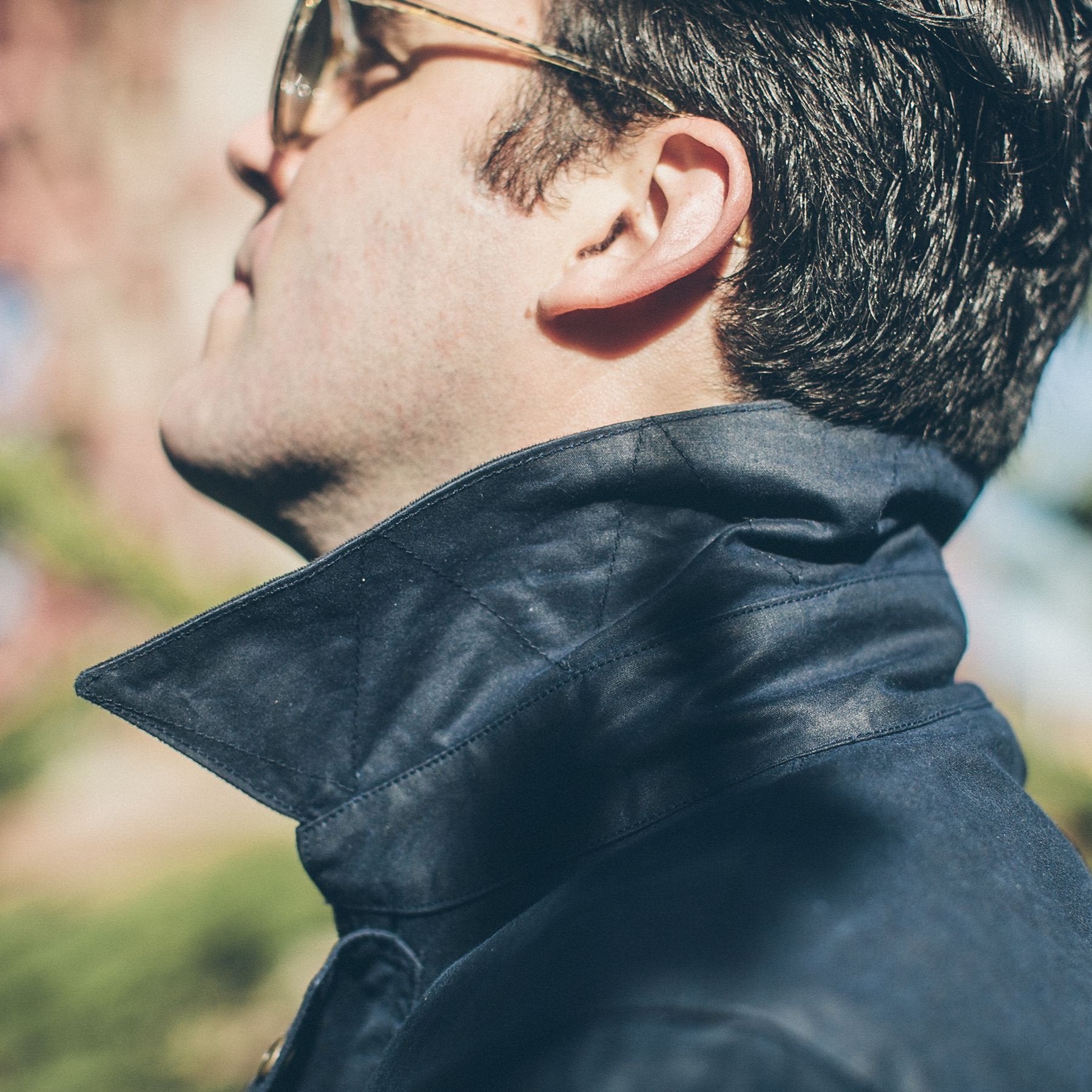 The Rover is our jacket made for foul weather. The moleskin body lining keeps you warm while the waxed canvas makes it water-resistant. In-stock in Navy.