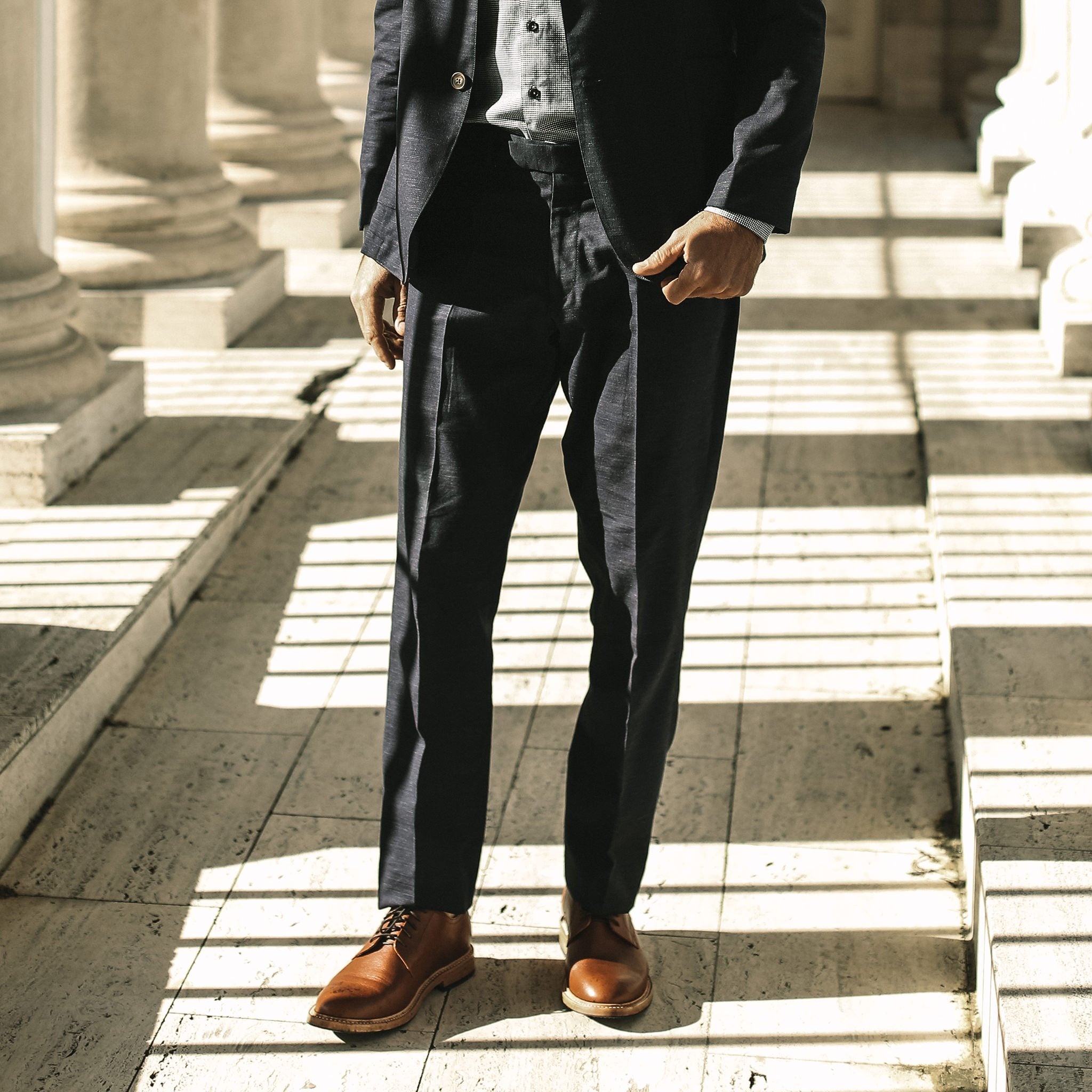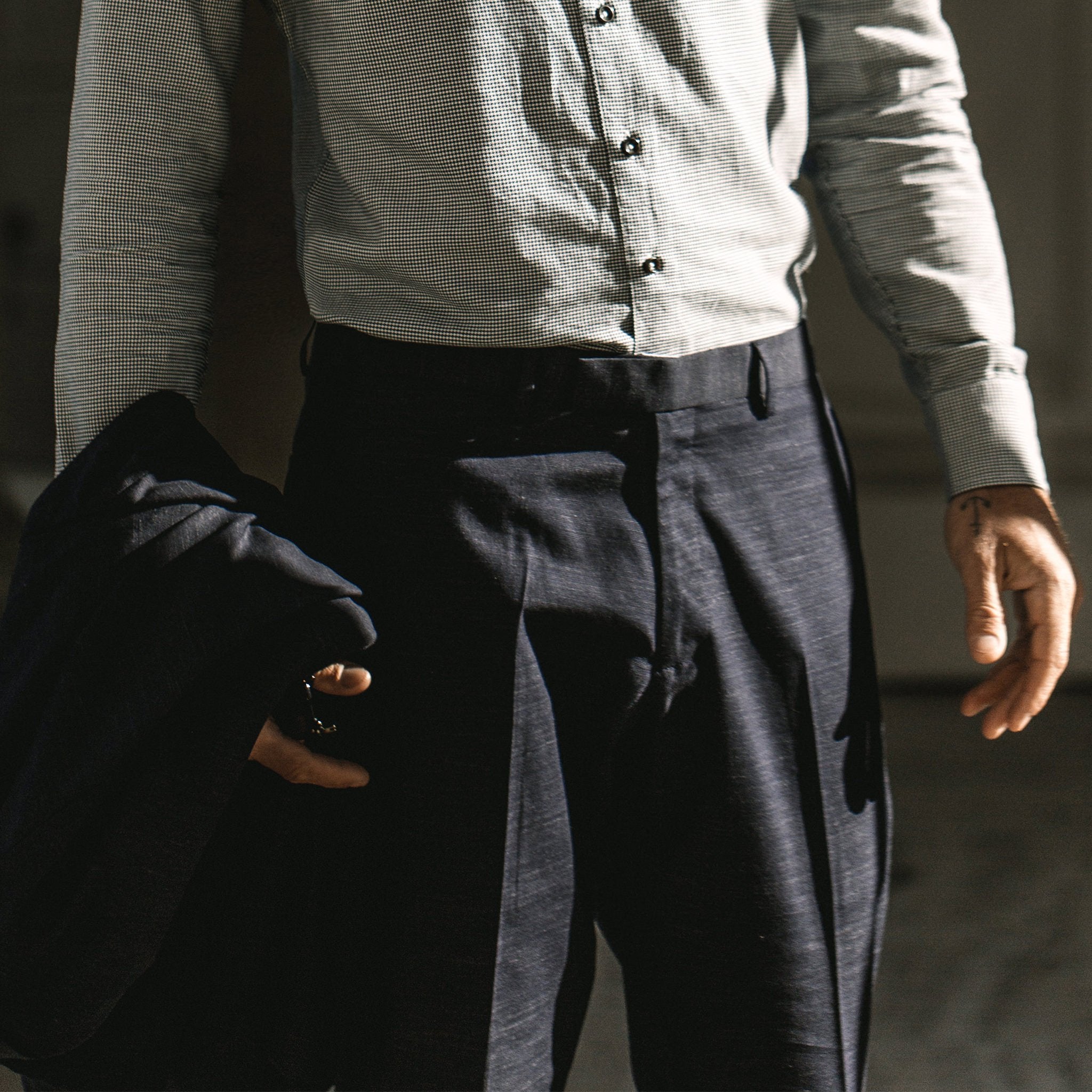 The Telegraph Trouser in Navy Slub from Taylor Stitch.