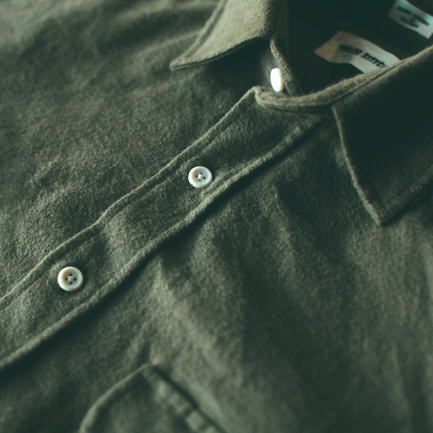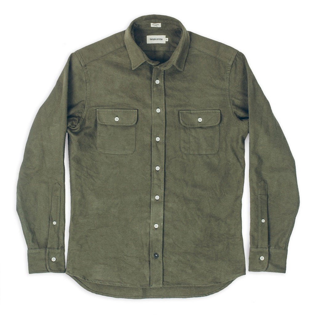 The perfect men's outdoor shirt that was a multi-year effort. Made out of thick, puppy-soft Portuguese chamois. Shop In-Stock in Olive.